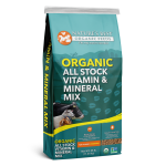 This mix provides energy and sweet flavor through molasses. Concentrated for a low feeding rate, this vitamin and mineral mix also provides a diverse inclusions of protein though ancient grains, vitamins, and fiber, ensuring your cattle, sheep, and goats are living their healthiest, happiest lives. Nature’s Best Organic All Stock Vitamin & Mineral Mix can fed top-dressed or blended into grains.