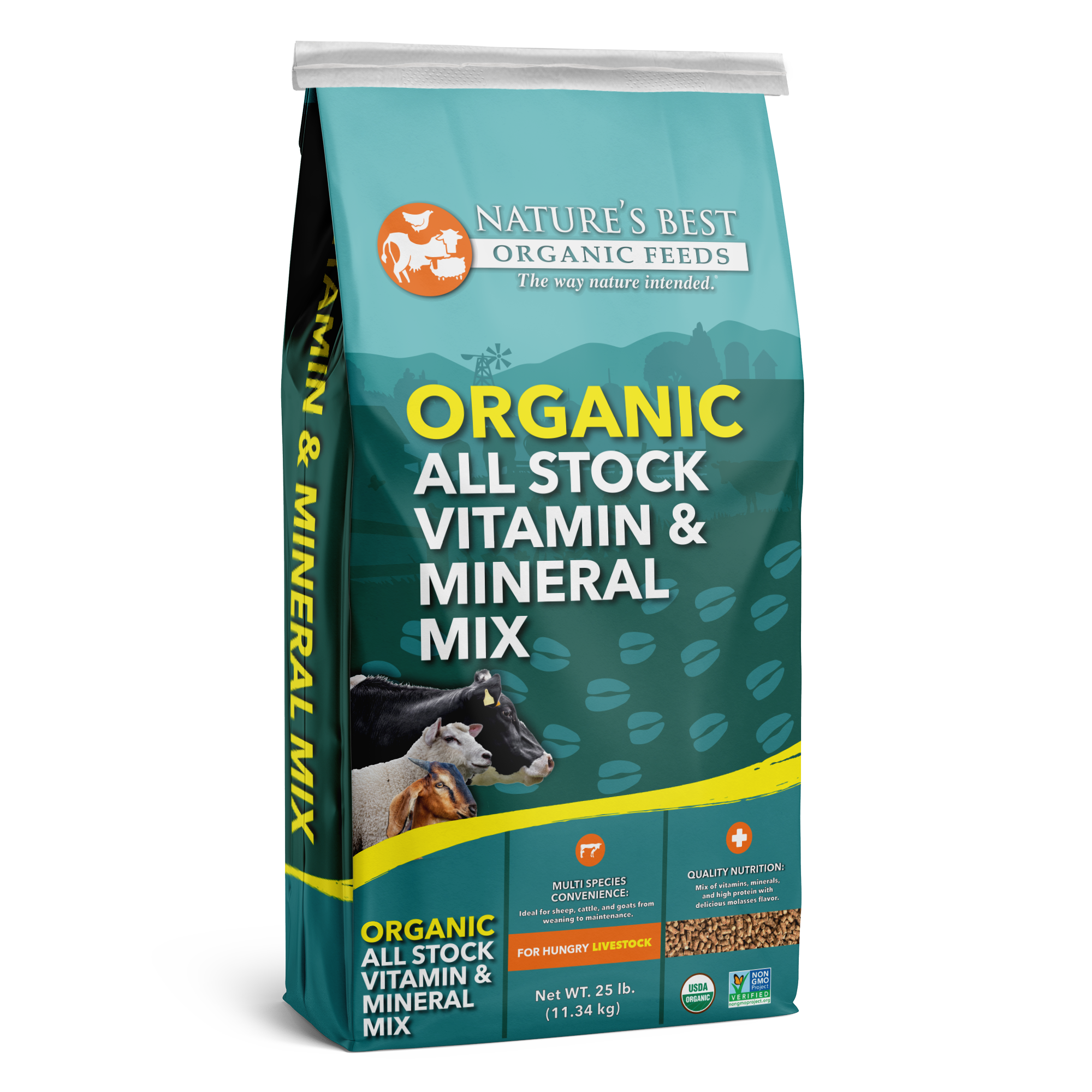 Give your livestock a taste of wholesome goodness with Nature’s Best Organic All Stock Vitamin & Mineral Mix. Specially crafted with the finest organic ingredients, this product is intended for use in addition to quality forage for cattle, sheep, and goats who, for the sake of nutrition and/or production, need a little something extra! Nature’s Best Organic All Stock Vitamin & Mineral Mix is also ideal for farmers looking to make their own, DIY feed.