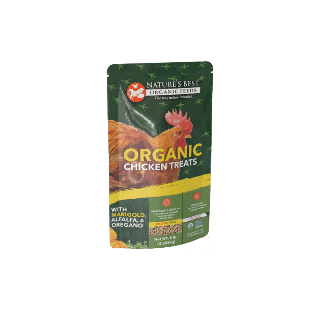 Feed Nature’s Best Organic Chicken Treats to adult chickens in addition to a complete feed. This product should not exceed 10% of the bird’s total diet and should be fed in addition to a complete feed, such as Nature’s Best Organic Egg Layer Pellets.
