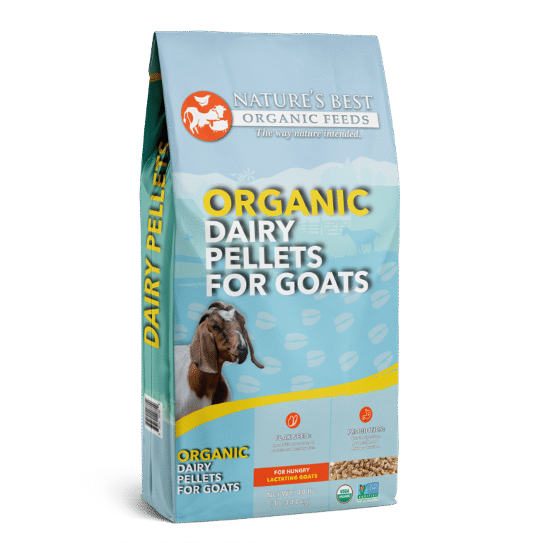 Nature’s Best Organic Dairy Goat Pellets are intended to be used as a goat feed in addition to quality forage. There is copper in the formula, so they are not intended for sheep. The pellets are carefully formulated by nutrition experts to provide necessary energy with a proper balance of protein, vitamins, and minerals, as well as added molasses for delicious flavor. Organic flax seeds provide an additional protein source and healthy fat. These pellets are an excellent choice for adult dairy goat herds as included probiotics aid in digestion and support milk production!