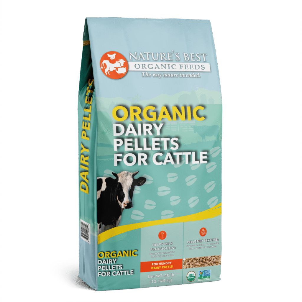 Nature’s Best Organic Dairy Cattle Pellets are intended to be used as a lactating cattle feed in addition to quality forage. The pellets are carefully formulated by nutrition experts to provide necessary energy with a mix of vitamins and minerals, as well as added molasses for delicious flavor. These pellets are an excellent choice for milk-producing adult cattle herds as the balanced formula supports milk production and the pelleted texture prevents sorting while keeping nutritional value consistent in every bite.