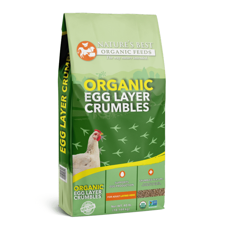 Crumbles specially formulated for egg-laying chickens immediately after their first eggs are laid. This formula is carefully balanced to provide high energy with a good balance of protein, amino acids, vitamins, and minerals! If birds prefer pellets, try our Nature’s Best Organic Egg Layer Pellets.