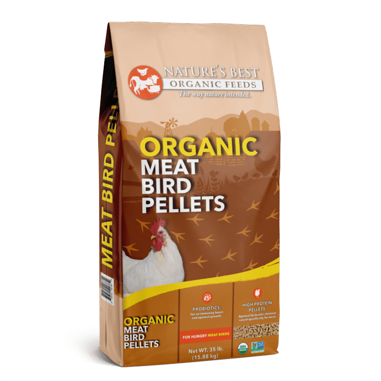 Nature’s Best Organic Meat Bird Pellets are fully fortified to steadily grow your birds for market with nutritious, organic ingredients. This formula is carefully balanced to provide high energy with a good balance of protein, amino acids, vitamins, minerals, and a probiotic for an immunity boost. If your birds are layers, try Nature’s Best Organic Egg Layer Pellets!